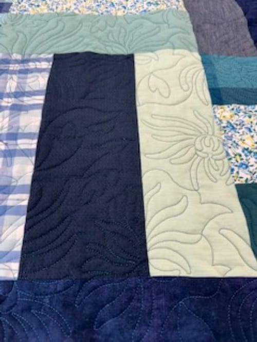 The top left quilt is densely quilted, and so is the Bottom left quilt. The top middle quilt has organic wavy lines. The top right quilt is geometric. Bottom middle and bottom right quilt are loose density quilting examples. You can see that the digital quilt pattern and density effects the overall look of the quilts.